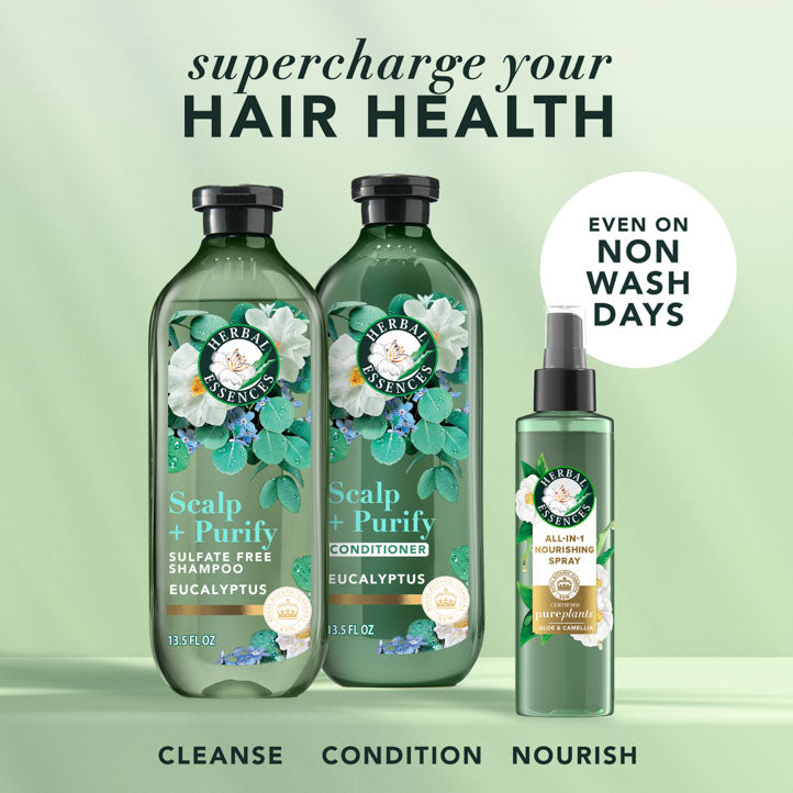 Hit reset on your scalp and your style. The Herbal Essences Scalp + Purify Eucalyptus Dual Pack brings together a refreshing sulfate-free shampoo and a lightweight, nourishing conditioner to help your hair feel as good as it looks.